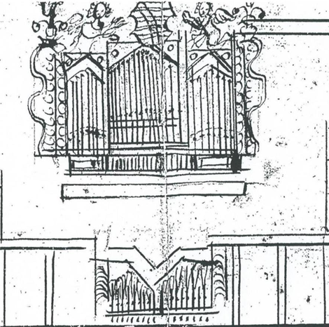Die erste Orgel dieser Kirche erbaute man wahrscheinlich 1533, im Zusammenhang mit dem Einbau der Emporen. Nach dem Kirchenbrand vom 22.4.1601 bekam die Kirche 1609 wiederum eine neue Orgel, die 1632 einem weiteren Feuer zum Opfer fiel. Die neue Orgel aus dem Jahr 1638 machten zwei Jahre später - mitten im Dreißigjährigen Krieg - bayrische Soldaten unbrauchbar. Eine Reparatur im Jahr 1654 gelang nicht, 1693 kam es zu einem Neubau durch Felix Daniel Streit aus Bayreuth (siehe Abb.).